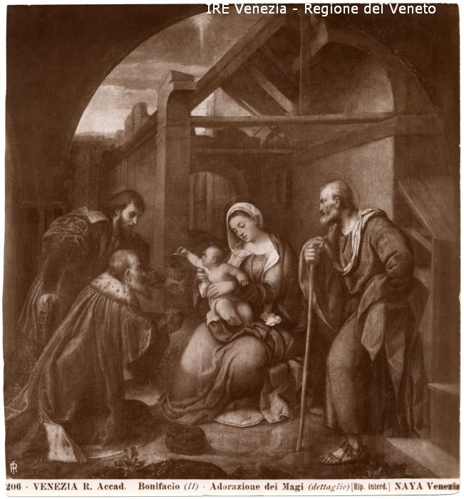 - ISCRIZIONI sul recto: in basso - 206 - VENEZIA R. Accad./ Bonifacio (II) - Adorazione dei Magi (dettaglio) [Rip. interd.] NAYA Venezia - fotografica -
