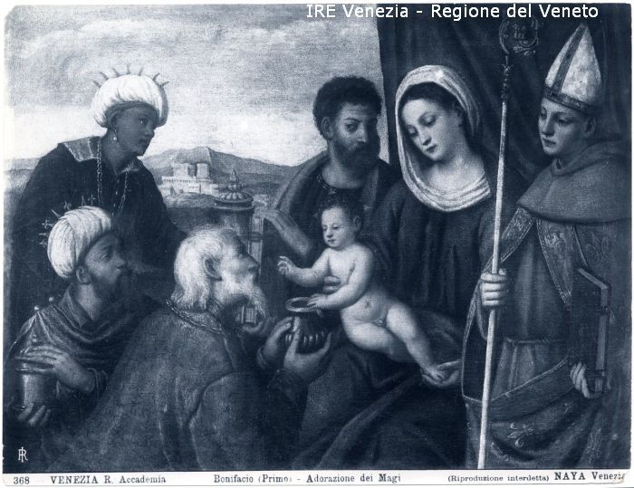 - ISCRIZIONI sul recto: in basso - 368 - VENEZIA R. Accademia/ Bonifacio (Primo) - Adorazione dei Magi/ (Riproduzione interdetta) NAYA Venezia - fotografica -