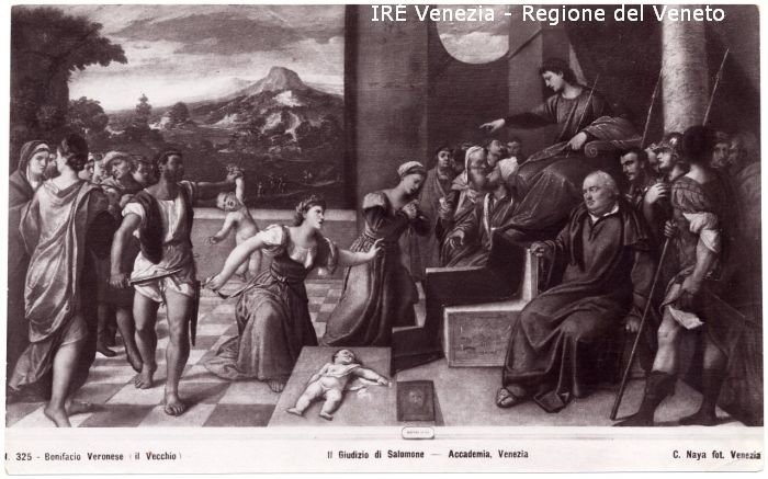 - ISCRIZIONI sul recto: in basso - 325 - Bonifacio Veronese (il Vecchio)/ Il Giudizio di Salomone - Accademia, Venezia/ C. Naya fot. Venezia - fotografica -