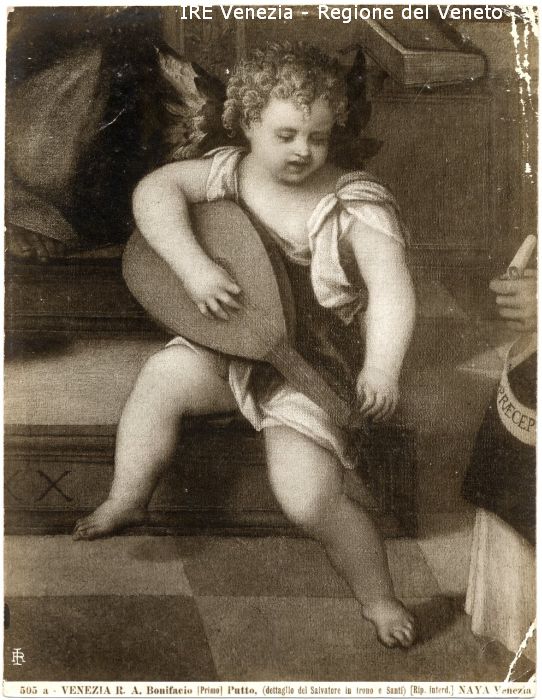 - ISCRIZIONI sul recto: in basso - 505 a - VENEZIA R. A. Bonifacio [Primo] Putto, (dettaglio del Salvatore in trono e Santi) [Rip. interd.] NAYA Venezia - fotografica -