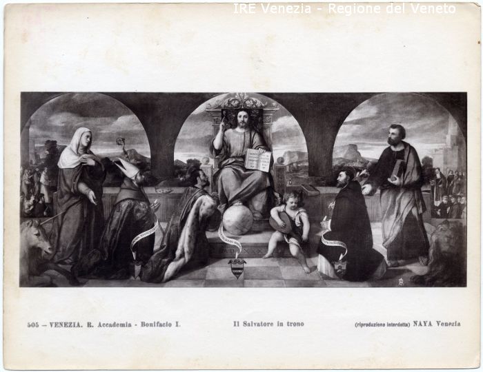 - ISCRIZIONI sul recto: in basso - 505 - VENEZIA R. Accad. Bonifacio I./ Il Salvatore in trono/ (riproduzione interdetta) NAYA Venezia - fotografica -