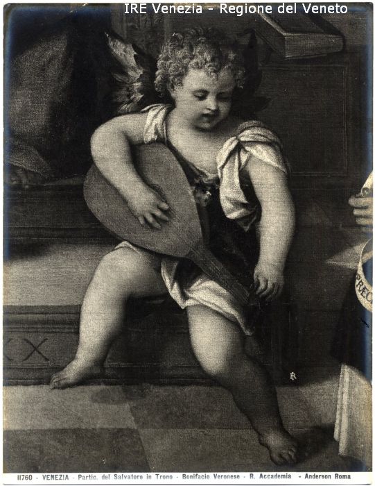 Bonifacio de'Pitati, "Salvatore in Trono", particolare, Putto musicante, n. 11760