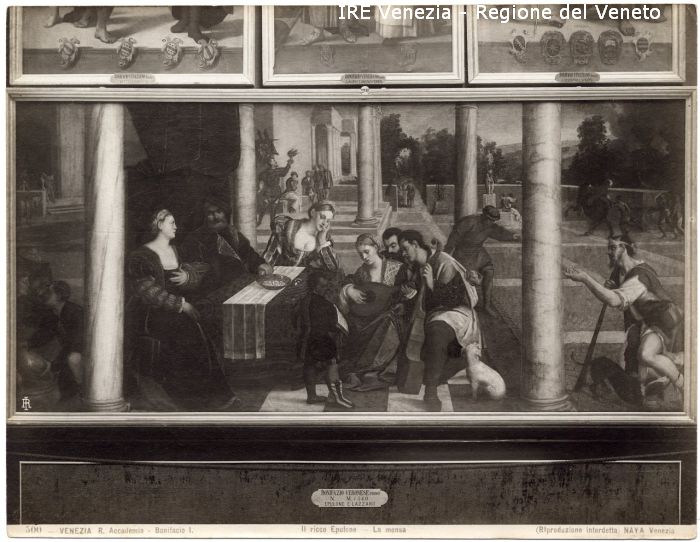 - ISCRIZIONI sul recto: in basso - 500 - Venezia R. Accademia - Bonifacio I./ Il Ricco Epulone - La mensa/ (riproduzione interdetta) NAYA Venezia - fotografica -