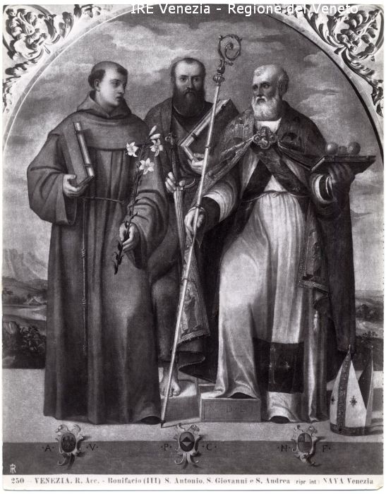 - ISCRIZIONI sul recto: in basso - 250 - VENEZIA - R. Acc. - Bonifacio (III) . Antonio, S. Giovanni e S. Andrea (ripr. int) NAYA Venezia - fotografica -