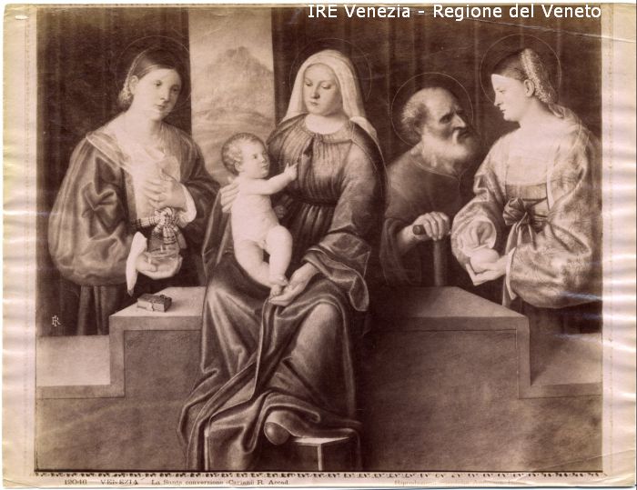 - ISCRIZIONI sul recto: in basso - 12046 - VENEZIA - La Santa converzione (Cariani) R. Accad./ Riproduzione interdetta Anderson - Roma - fotografica -