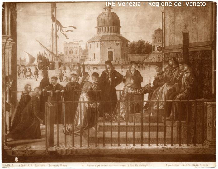 - ISCRIZIONI sul recto: in basso - 539 A - VENEZIA. R. Accademia - Carpaccio Vittore./ Gli Ambasciatori inglesi ritornano presso il loro Re (dettaglio -/ (Riproduzione interdetta) NAYA Venezia - fotografica -