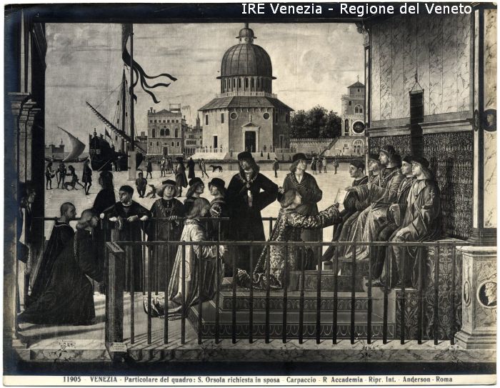 - ISCRIZIONI sul recto: in basso - 11905 - VENEZIA - Particolare del quadro: S. Orsola richiesta in sposa - Carpaccio - R. Accademia - Ripr. Int. - Anderson - Roma - fotografica -