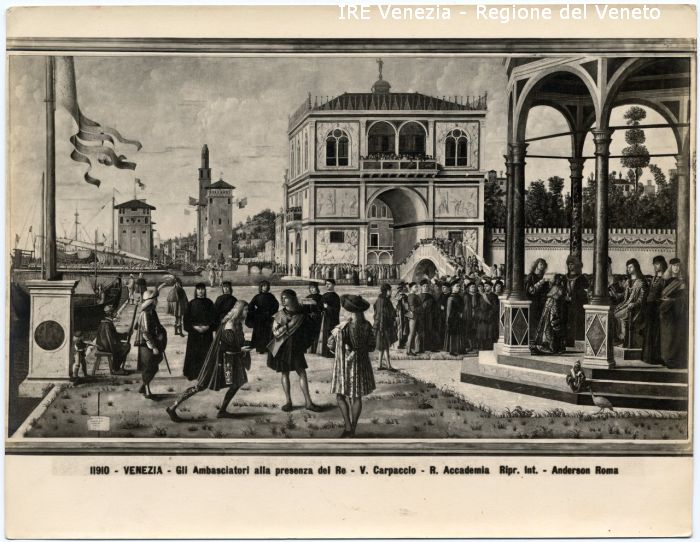 - ISCRIZIONI sul recto: in basso - 11910 - VENEZIA - Gli Ambasciatori alla presenza del Re - V. Carpaccio - R. Accademia Ripr. Int. - Anderson Roma - fotografica -