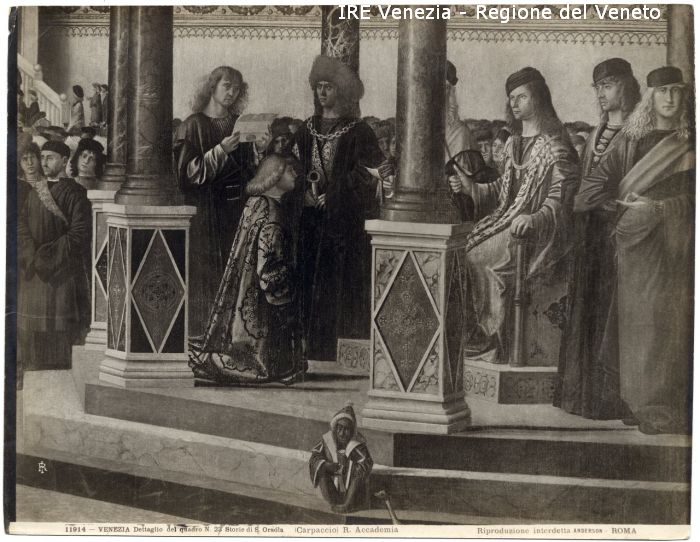 - ISCRIZIONI sul recto: in basso - 11914 - VENEZIA Dettaglio del quadro N. 23 Storie di S. Orsola/ (Carpaccio) R. Accademia/ Riproduzione interdetta ANDERSON - ROMA - fotografica -