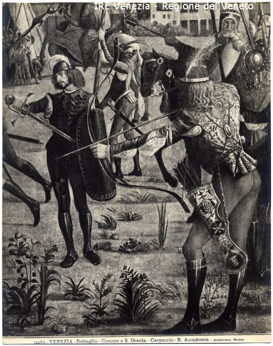 - ISCRIZIONI sul recto: in basso - 11482 - VENEZIA - Dettaglio - Conone e S. Orsola - Carpaccio - R. Accademia - Anderson, Roma - fotografica -