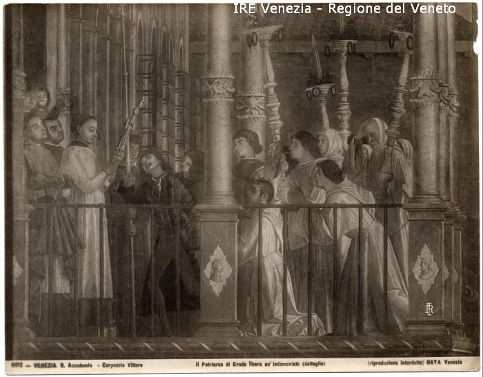 - ISCRIZIONI sul recto: in basso - 602 - VENEZIA. R. Accademia - Carpaccio Vittore/ Il Patriarca di Grado libera un'indemoniato (dettaglio)/ (riproduzione interdetta) NAYA Venezia - fotografica -