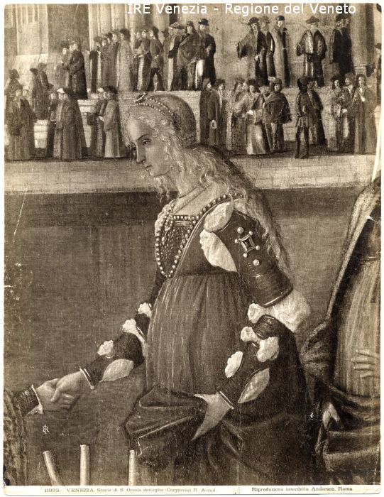 - ISCRIZIONI sul recto: in basso - 11933 - VENEZIA. Storie di S. Orsola dettaglio (Carpaccio) R. Accad./ Riproduzione interdetta Anderson, Roma - fotografica -