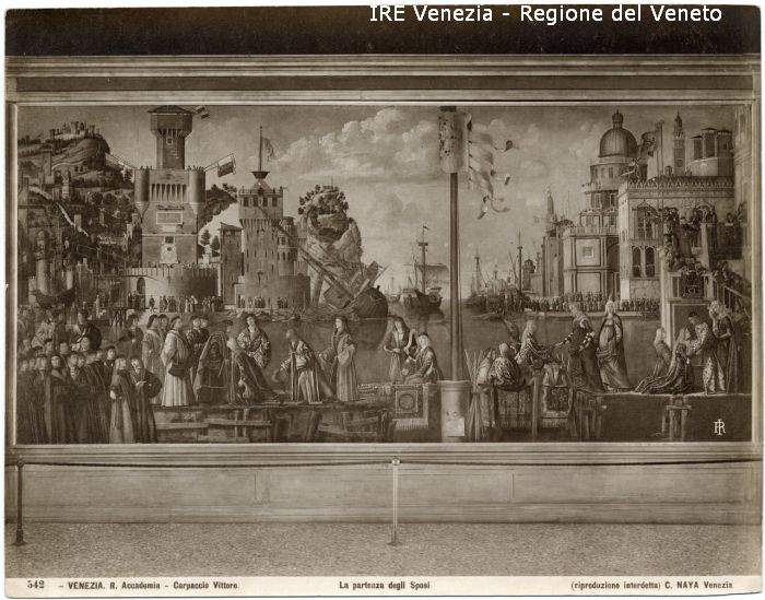 - ISCRIZIONI sul recto: in basso - 542 - VENEZIA. R. Accademia - Carpaccio Vittore./ La partenza degli Sposi/ (riproduzione interdetta) C. NAYA Venezia - fotografica -