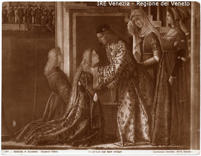 - ISCRIZIONI sul recto: in basso - 568 - VENEZIA. R. Accademia - Carpaccio Vittore/ La partenza degli Sposi (dettaglio)/ (riproduzione interdetta) NAYA Venezia - fotografica -