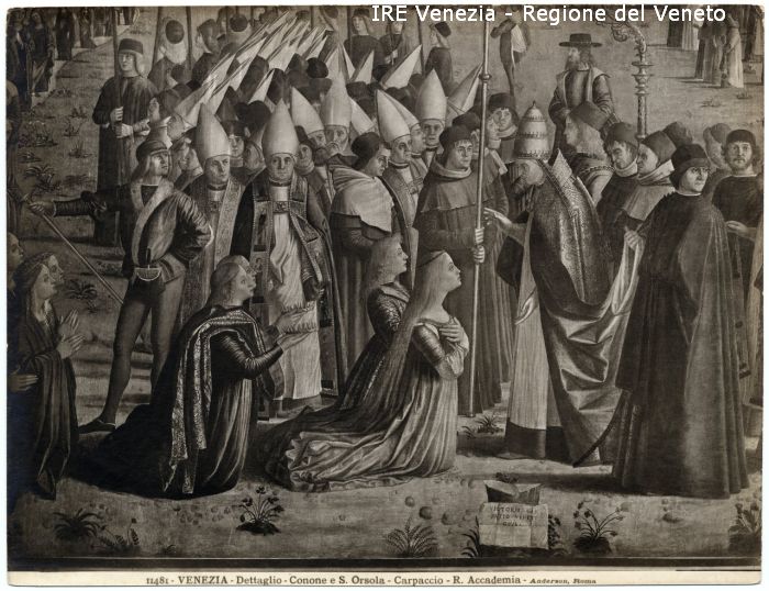 - ISCRIZIONI sul recto: in basso - 11481 - VENEZIA - Dettaglio - Conone e S. Orsola - Carpaccio - R. Accademia - Anderson, Roma - fotografica -