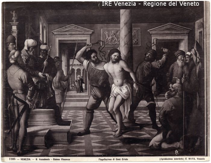 - ISCRIZIONI sul recto: in basso - 1205 - VENEZIA. - R. Accademia - Catena Vincenzo/ Flagellazione di Gesù Cristo/ (riproduzione interdetta) C. NAYA. Venezia - fotografica -