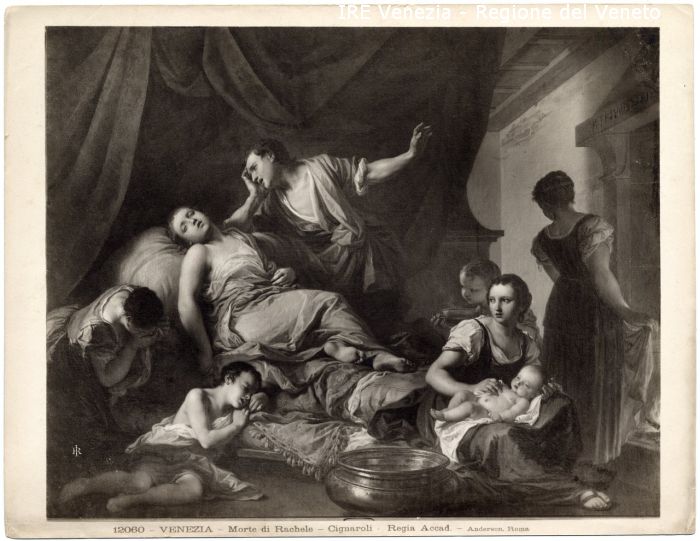 - ISCRIZIONI sul recto: in basso - 12060 - VENEZIA - Morte di Rachele - Cignaroli - R. Accad. - Anderson, Roma - fotografica -