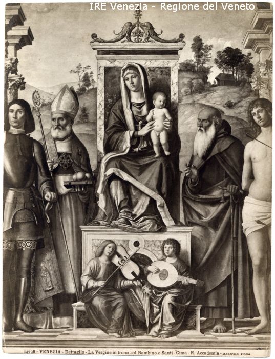 - ISCRIZIONI sul recto: in basso - 14738 - VENEZIA - Dettaglio - La Vergine in trono col Bambino e Santi - Cima - R. Accademia - Anderson, Roma - fotografica -