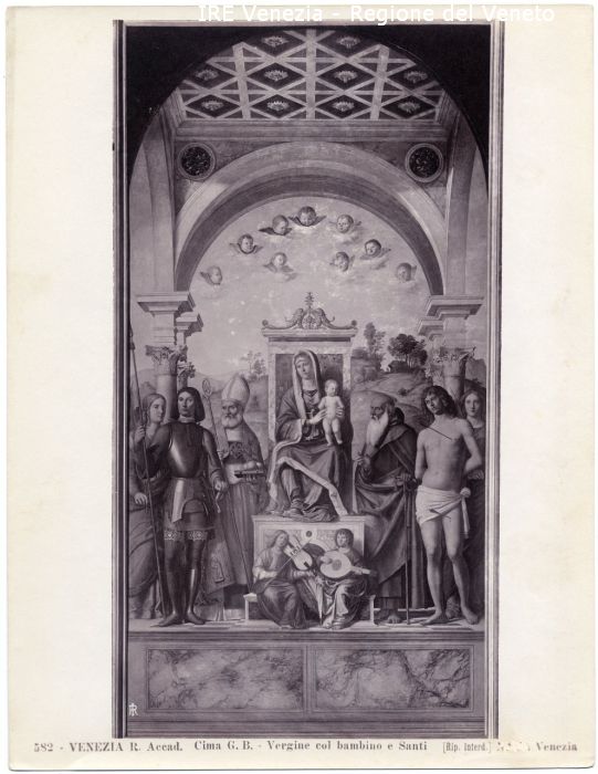 - ISCRIZIONI sul recto: in basso - 582 - VENEZIA R. Accad. Cima G. B./ Vergine col bambino e Santi/ [Rip. Interd.] NAYA Venezia - fotografica -