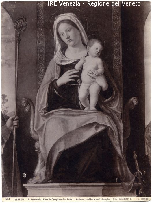 - ISCRIZIONI sul recto: in basso - 851 - VENEZIA - R. Accademia -Cima da Conegliano Gio. Batta. (1460 - 1518)/ Madonna, bambino e santi (dettaglio)/ (ripr. interdetta) C. [...] Venezia - fotografica -
