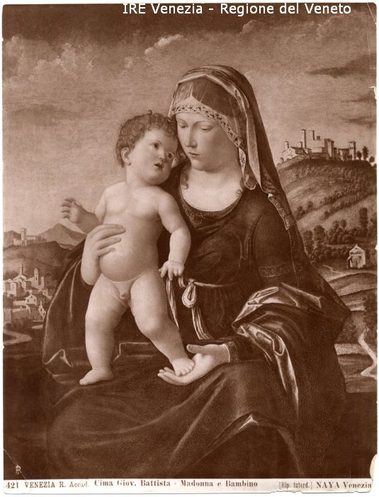 - ISCRIZIONI sul recto: in basso - 421 - VENEZIA R. Accad. Cima Giov. Battista - Madonna e Bambino/ [Rip. interd.] NAYA Venezia - fotografica -