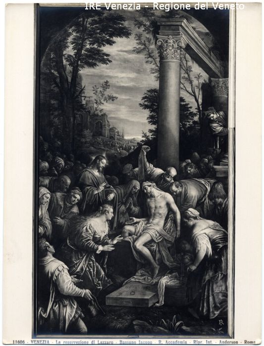 - ISCRIZIONI sul recto: in basso - 11606 - VENEZIA - La resurrezione di Lazzaro - Bassano Iacopo - R. Accademia - Ripr. Int. - Anderson - Roma - fotografica -
