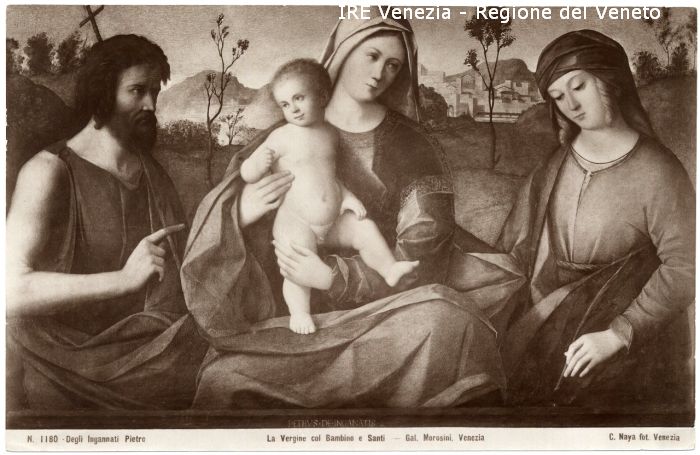 - ISCRIZIONI sul recto: in basso - N. 1180 - Degli Ingannati Pietro/ La Vergine col Bambino e Santi - Gal. Morosini. Venezia/ C. Naya fot. Venezia - fotografica -