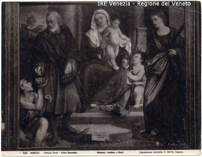 - ISCRIZIONI sul recto: in basso - 441 - VENEZIA - Palazzo Reale - Diana Benedetto/ Madonna, bambino e Santi/ (riproduzione interdetta) C. NAYA. Venezia - fotografica -