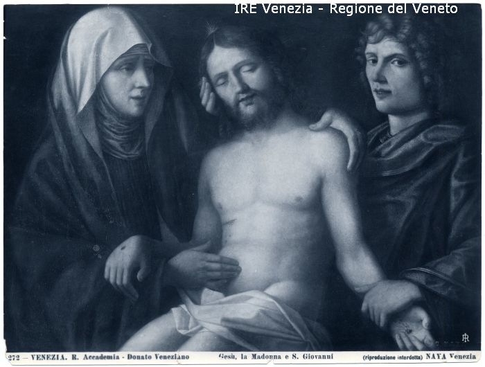- ISCRIZIONI sul recto: in basso - 272 - VENEZIA. R. Accademia - Donato Veneziano/ Gesù, la Madonna e S. Giovanni/ (riproduzione interdetta) NAYA Venezia - fotografica -