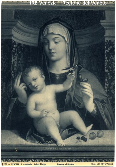 - ISCRIZIONI sul recto: in basso - 1196 - VENEZIA. R. Accademia - Fabris Placido/ Madonna col Bambino/ (Ripr. int.) NAYA Venezia - fotografica -