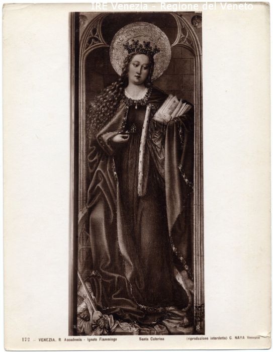 - ISCRIZIONI sul recto: in basso - 172 - VENEZIA. R. Accademia - Ignoto Fiammingo/ Santa Caterina/ (riproduzione interdetta) C. NAYA Venezia - fotografica -