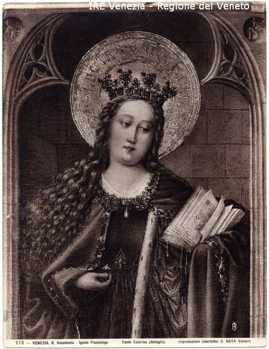 - ISCRIZIONI sul recto: in basso - 173 - VENEZIA. R. Accademia - Ignoto Fiammingo/ Santa Caterina (dettaglio)/ (riproduzione interdetta) C. NAYA Venezia - fotografica -