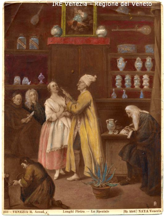 - ISCRIZIONI sul recto: in basso - 231 - VENEZIA R. Accad./ Longhi Pietro - Lo Speziale/ [Rip. Interd.] NAYA Venezia - fotografica -