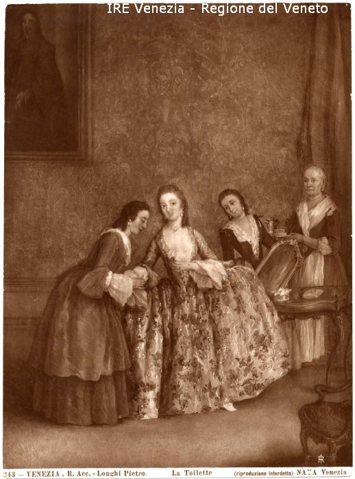 - ISCRIZIONI sul recto: in basso - 243 - VENEZIA. R. Acc. - Longhi Pietro./ La Toilette/ (riproduzione interdetta) NAYA Venezia - a matita -