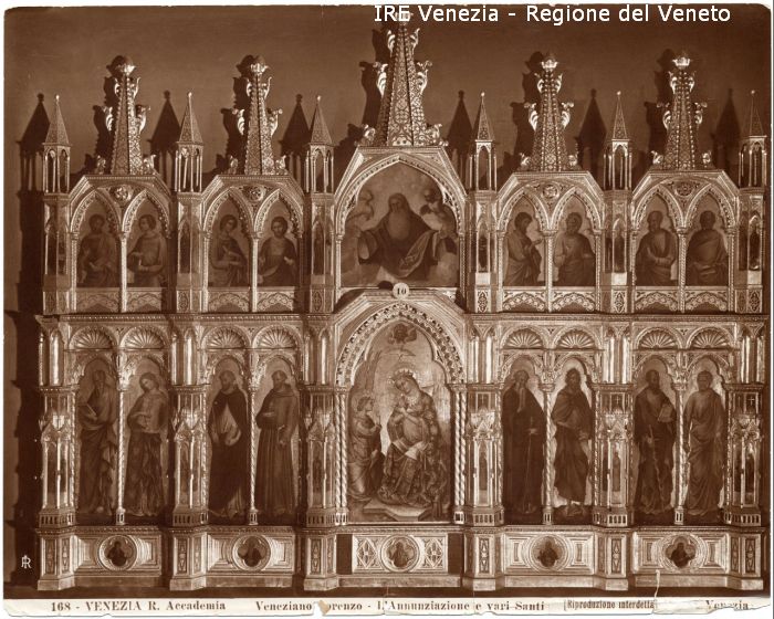 - ISCRIZIONI sul recto: in basso - 168 - VENEZIA. R. Accademia/ Veneziano Lorenzo - L'Annunciazione e vari Santi/ [Riproduzione interdetta] [...] Venezia - a matita -