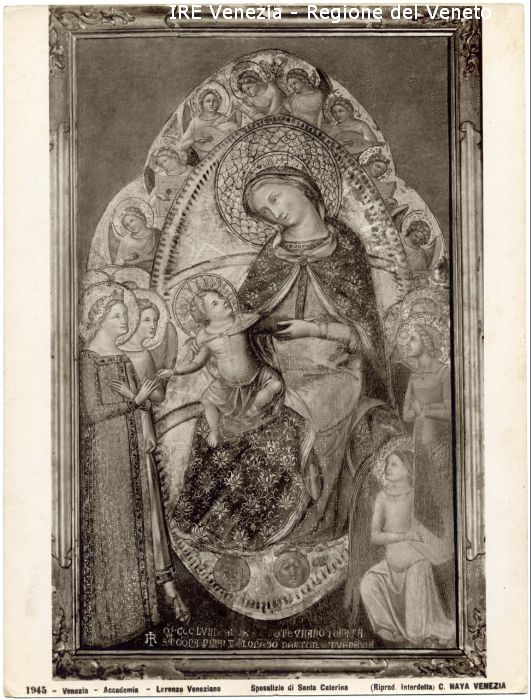 - ISCRIZIONI sul recto: in basso - 1945 - Venezia - Accademia - Lorenzo Veneziano/ Sposalizio di Santa Caterina/ (Riprod. Interdetta) C. NAYA VENEZIA - a matita -