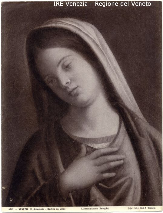 - ISCRIZIONI sul recto: in basso - 563 - VENEZIA. R. Accademia - Martino da Udine/ L'Annunziazione (dettaglio)/ (ripr. int.) NAYA Venezia - fotografica -