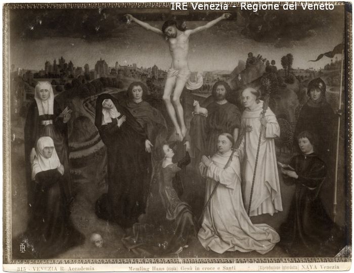 - ISCRIZIONI sul recto: in basso - 315 - VENEZIA. R. Accademia/ Memling Hans (copia) Gesù in croce e Santi/ [Riproduzione interdetta] NAYA Venezia - fotografica -