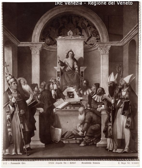 - ISCRIZIONI sul recto: in basso - 512 - Pennacchi Ciro/ Cristo disputa fra i dottori - Accademia - Venezia/ C. Naya fot. Venezia - fotografica -