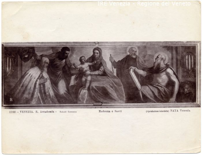 - ISCRIZIONI sul recto: in basso - 1703 - VENEZIA. R. Accademia - Robusti Domenico/ Madonna e Santi/ (riproduzione interdetta) NAYA Venezia - fotografica -