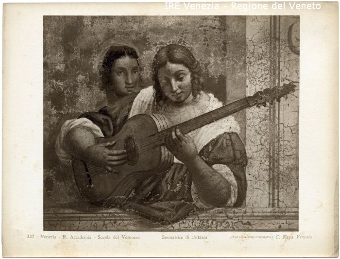 - ISCRIZIONI sul recto: in basso - 337 - Venezia - R. Accademia - Scuola del Veronese/ Suonatrice di chitarra/ (Riproduzione interdetta) C. Naya Venezia - fotografica -