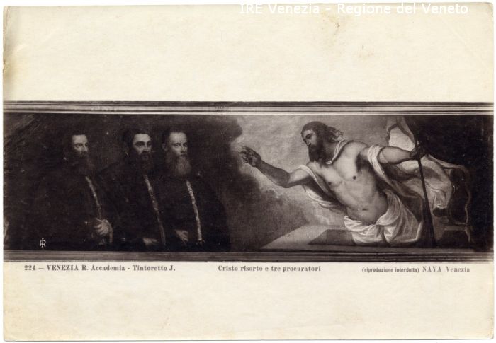 - ISCRIZIONI sul recto: in basso - 224 - VENEZIA R. Accademia - Tintoretto J./ Cristo risorto e tre procuratori/ (riproduzione interdetta) NAYA Venezia - fotografica -