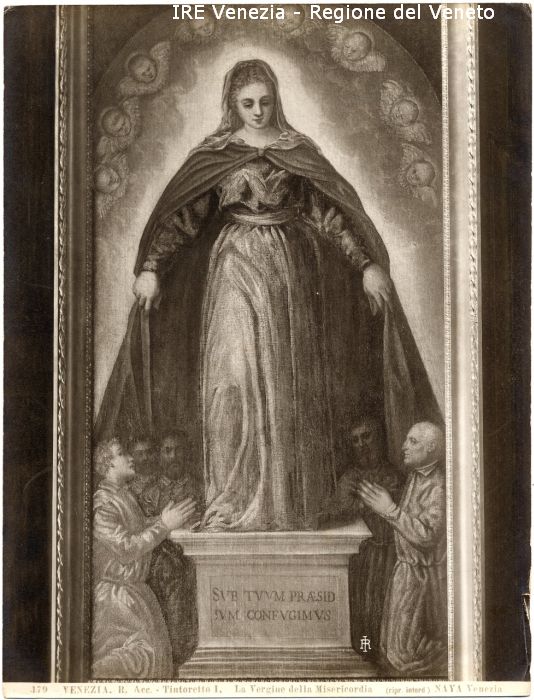 - ISCRIZIONI sul recto: in basso - 179 - VENEZIA. R. Acc. - Tintoretto I./ La Vergine della Misericordia/ (ripr. interd.) NAYA Venezia - fotografica -