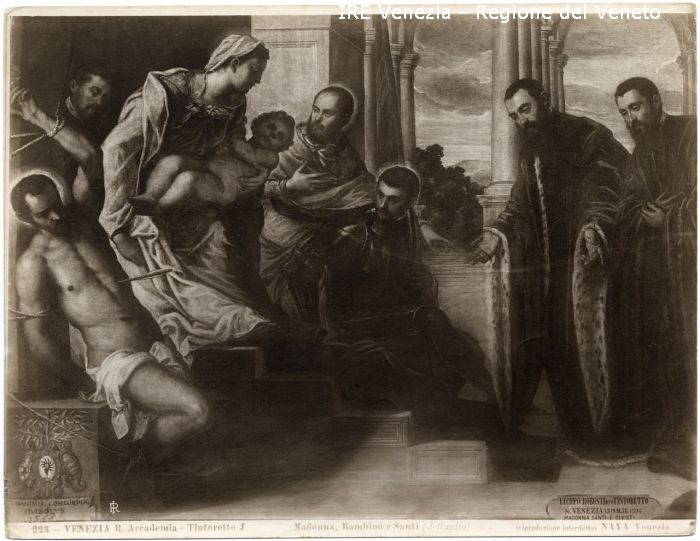- ISCRIZIONI sul recto: in basso - 223 - VENEZIA R. Accademia - Tintoretto J./ Madonna, Bambino e Santi (dettaglio)/ (riproduzione interdetta) NAYA Venezia - fotografica -