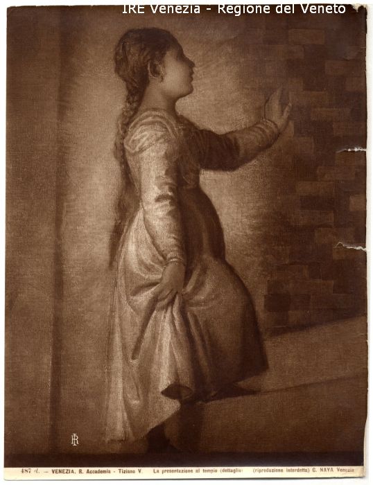 - ISCRIZIONI sul recto: in basso - 487 d. - VENEZIA. R. Accademia - Tiziano V./ La presentazione al Tempio (dettaglio)/ (riproduzione interdetta) C. NAYA Venezia - fotografica -