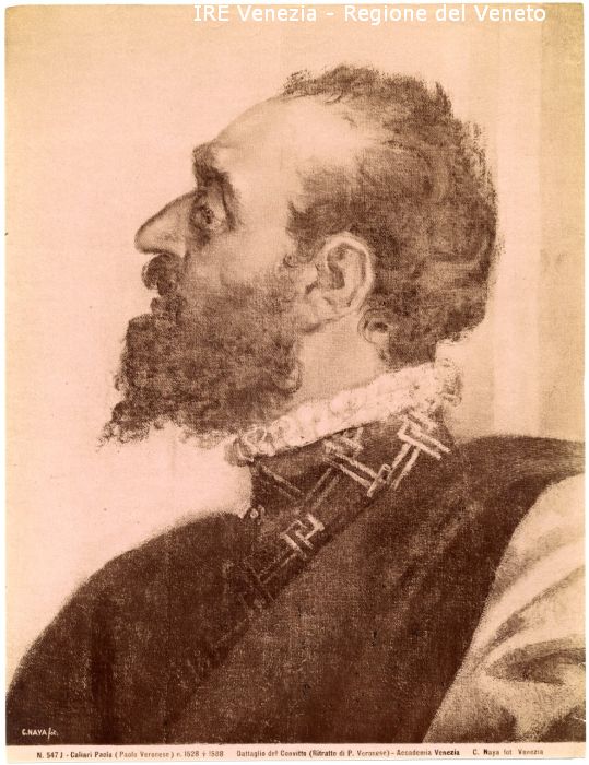 - ISCRIZIONI sul recto: in basso - N. 547 j - Caliari Paolo (Paolo Veronese) n. 1528 + 1588/ Dettaglio del Convitto (Ritratto di P. Veronese) - Accademia Venezia/ C. Naya fot. Venezia - a matita -