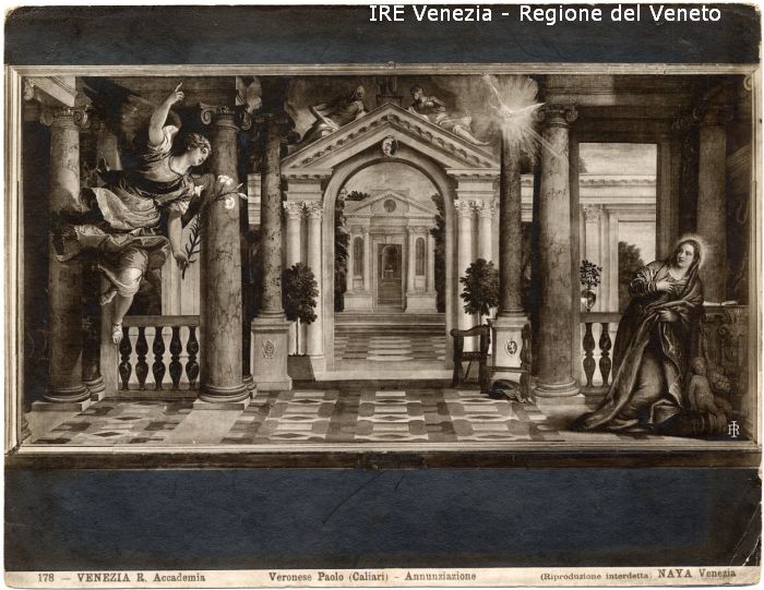 - ISCRIZIONI sul recto: in basso - 178 - VENEZIA R. Accademia/ Veronese Paolo (Caliari) - Annunziazione/ (Riproduzione interdetta) NAYA Venezia - fotografica -