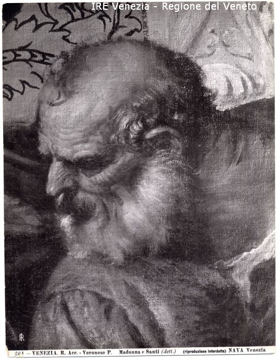 - ISCRIZIONI sul recto: in basso - 264 - VENEZIA. R. Acc. - Veronese P. Madonna e Santi (dett.) (riproduzione interdetta) NAYA Venezia - fotografica -