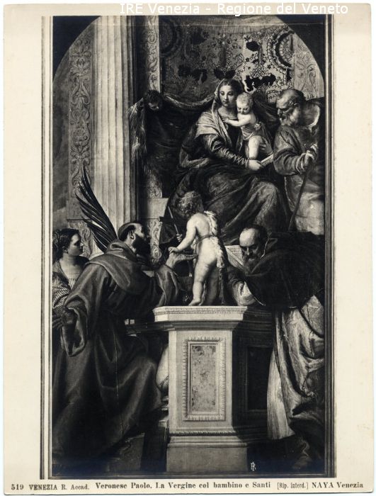 - ISCRIZIONI sul recto: in basso - 519 VENEZIA R. Accad. Veronese Paolo. La Vergine col bambino e Santi [Rip. interd.] NAYA Venezia - fotografica -