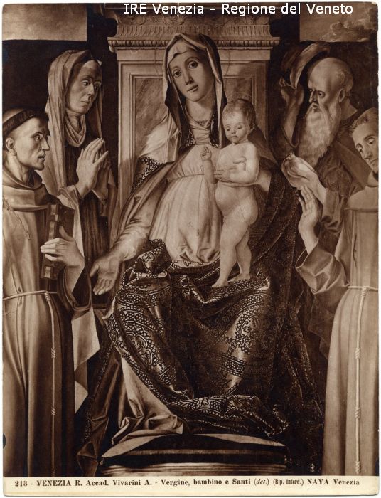 - ISCRIZIONI sul recto: in basso - 213 - VENEZIA R. Accad. Vivarini A./ Vergine, bambino e Santi (det.)/ (Rip. interd.) NAYA Venezia - fotografica -